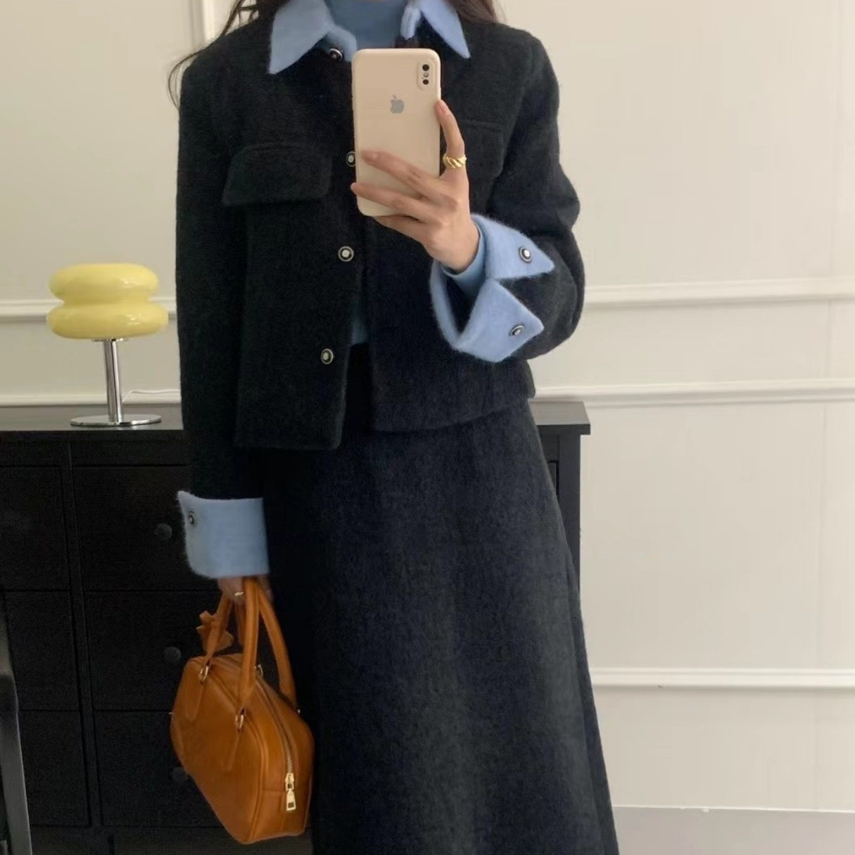 【羽绒内胆】2022秋冬新款小香风毛呢拼接两件套显瘦网红裙套装潮热门设计联盟服务商