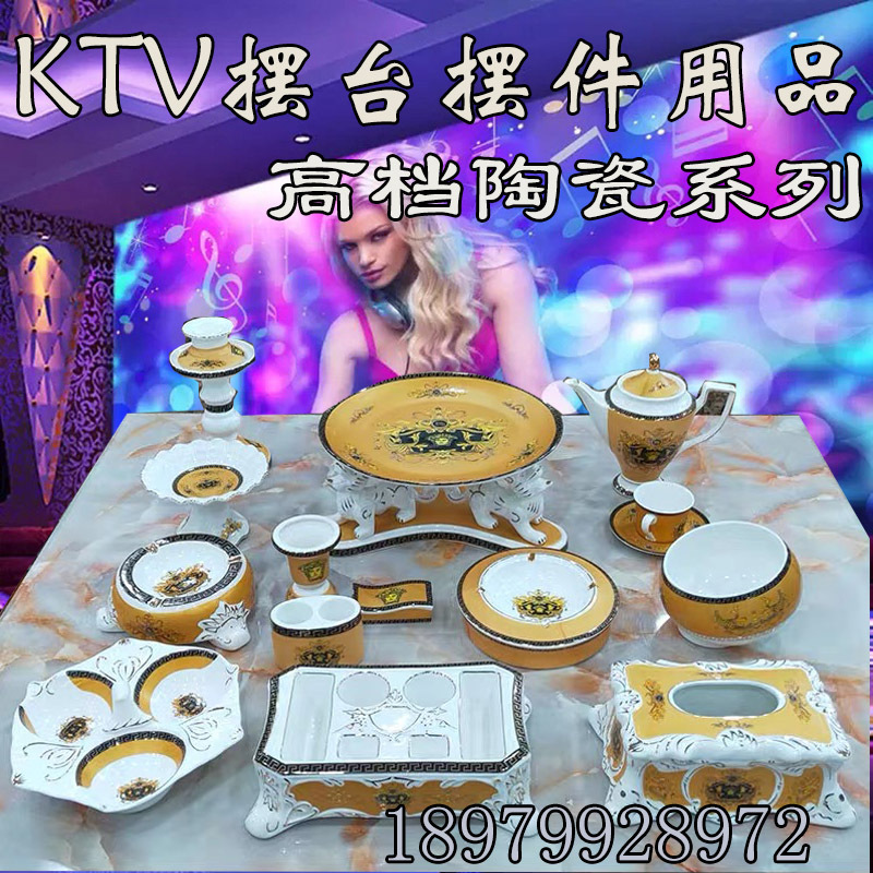 KTV会所摆台用品欧式陶瓷茶几摆件果盘架烟灰缸抽纸盒话筒架全套热门设计联盟服务商