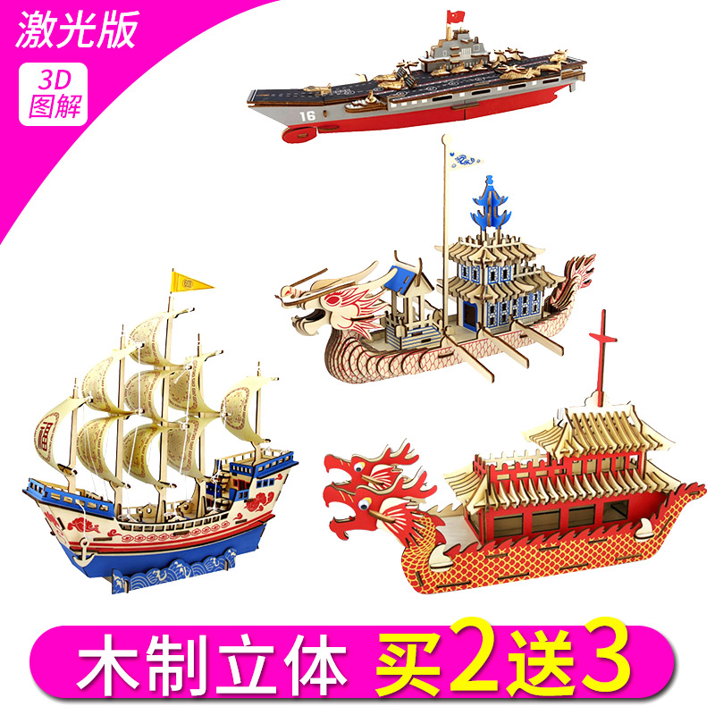 木质辽宁号航母模型帆船成人男女儿童摆件手工3D立体拼装玩具热门设计联盟服务商
