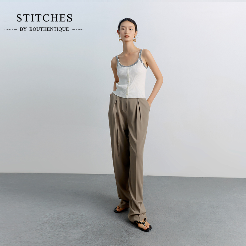 STITCHES瑧緻撞色设计感小众吊带打底针织紧身背心内搭外穿白热门设计联盟服务商