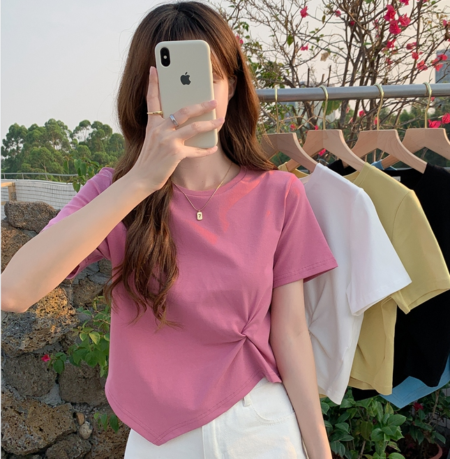 2022夏季新款打褶不规则短袖棉T恤女设计感小众女上衣T恤热门设计联盟服务商