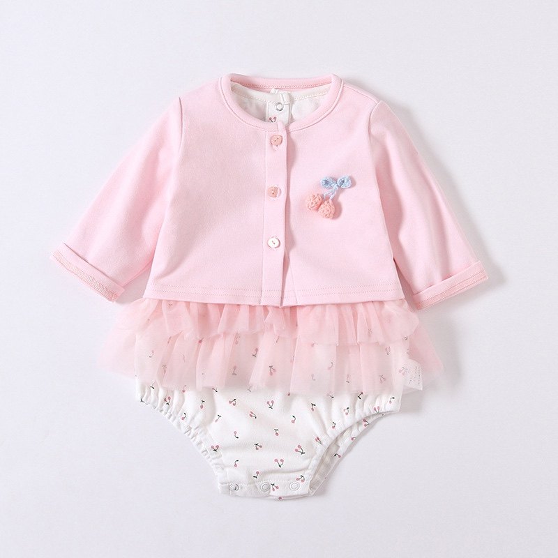 2023春季新款女宝宝两件套连体衣粉色网纱包屁衣超可爱爬服哈衣